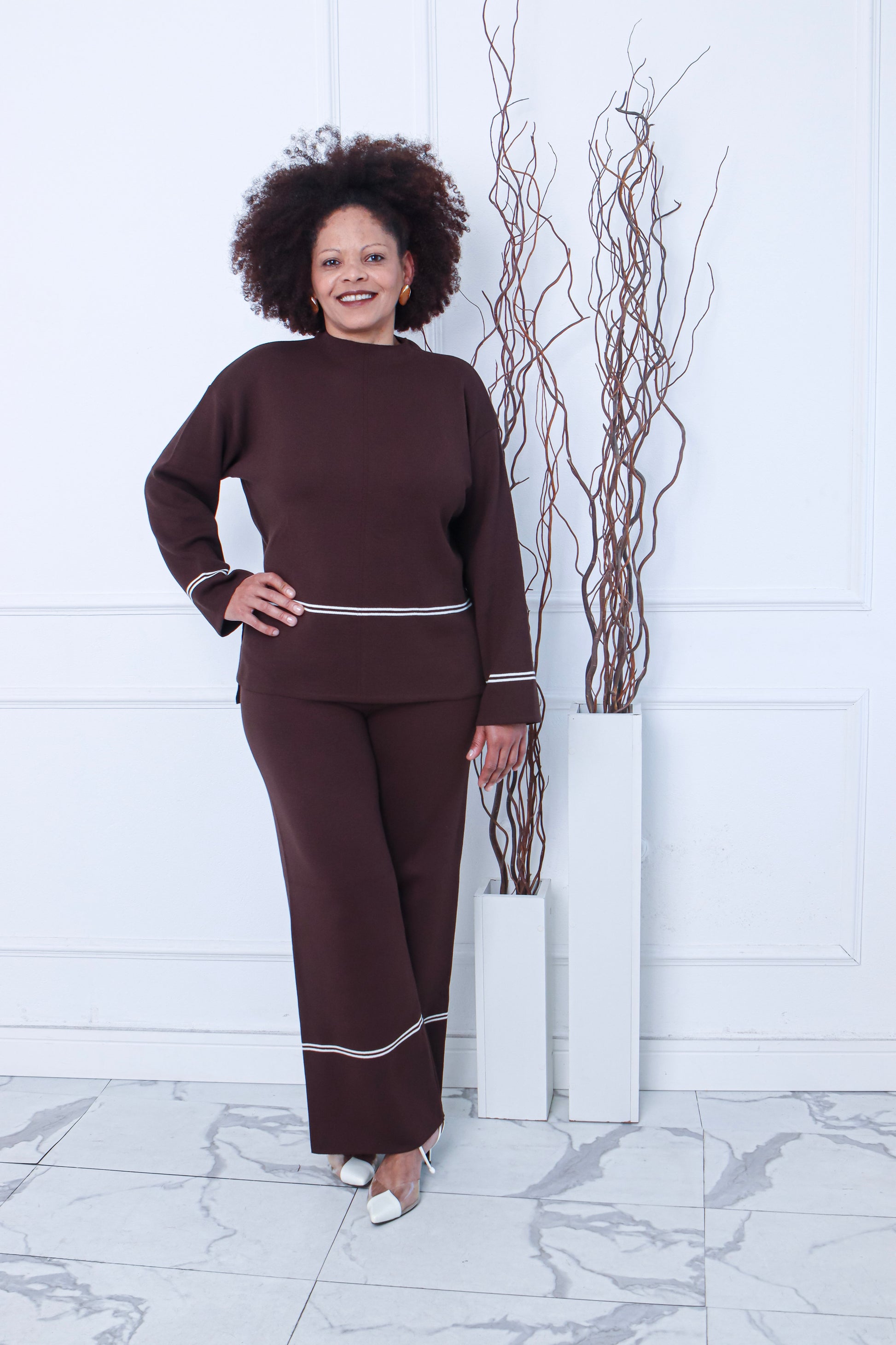Designed for elevated comfort, the Milano Knit Lounge Set redefines cozy sophistication. Crafted in a premium medium-weight knit with soft stretch, this two-piece set features a relaxed-fit top with dropped shoulders and matching wide-leg pants. Delicate contrast piping at the waist and hem adds a refined touch of structure to the minimal silhouette.